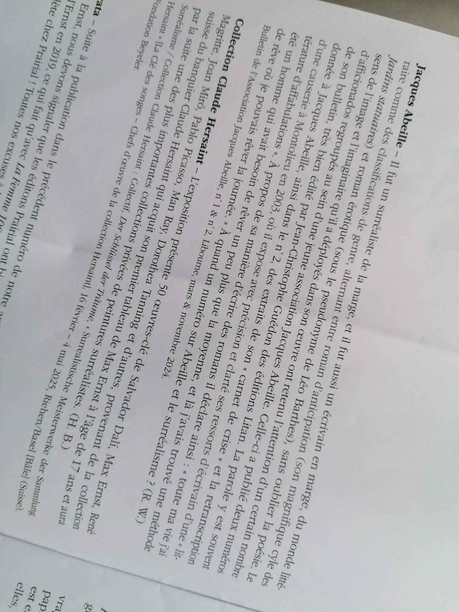 Aussi, d'ores et déjà, l'Association Jacques Abeille se félicite-t-elle de la parution dans la revue Europe (en avril 2024) d'un ensemble substantiel dirigé par Alain Roussel (poète et critique, membre de l'AJA). Notre site en rendra compte.